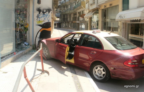 Το ταξί πέρασε δίπλα από το κάγκελο και κομμάτιασε την τζαμαρία μέσα σε εκκωφαντικό θόρυβο, που ξεσήκωσε τη γειτονιά. Ο οδηγός του ταξί βγήκε από το όχημα λουσμένος στο αίμα!