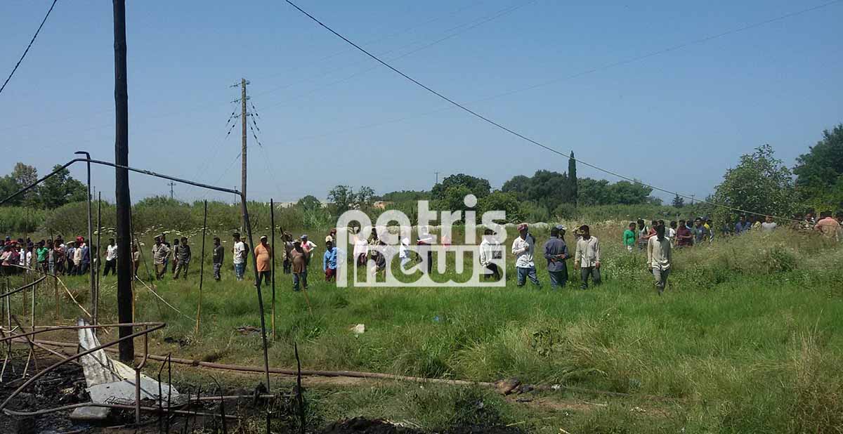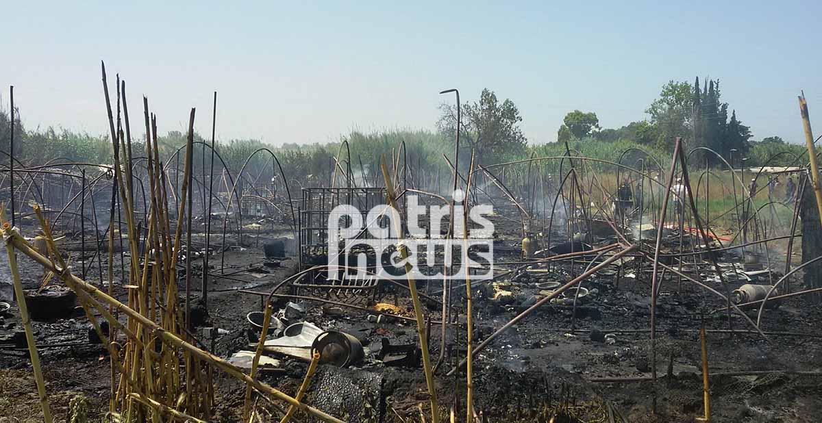 Λίγο πριν τις 12 η φωτιά είχε κατασβεστή, ωστόσο τα πάντα είχαν καταστραφεί, υπό το βλέμμα των αλλοδαπών που είχαν επιστρέψει από τα χωράφια στο χώρο και έβλεπαν τα υπάρχοντά τους να γίνονται στάχτη.