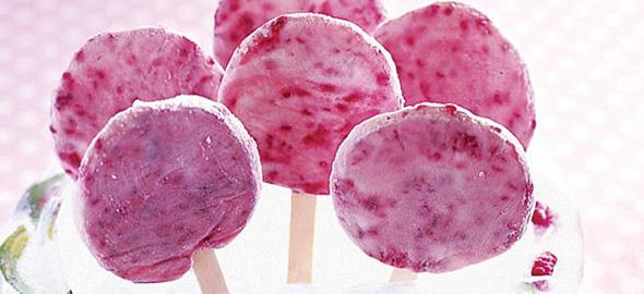 Σε ένα ταψί ψησίματος, βάλτε αντικολλητική κόλλα και με ένα κουτάλι ρίξτε το μείγμα φτιάχνοντας κυκλικά σχήματα. Βάλτε τα ξυλάκια στο κέντρο του κύκλου και τοποθετήστε τα στο ψυγείο μέχρι να παγώσουν.